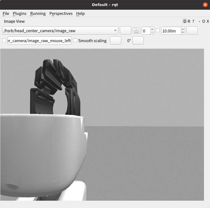 rqtが起動したら、「Plugins」→「Visualization」→「Image View」の順に選択し、トピック名から「/head_l_stereo_camera/image_raw」を選択する
