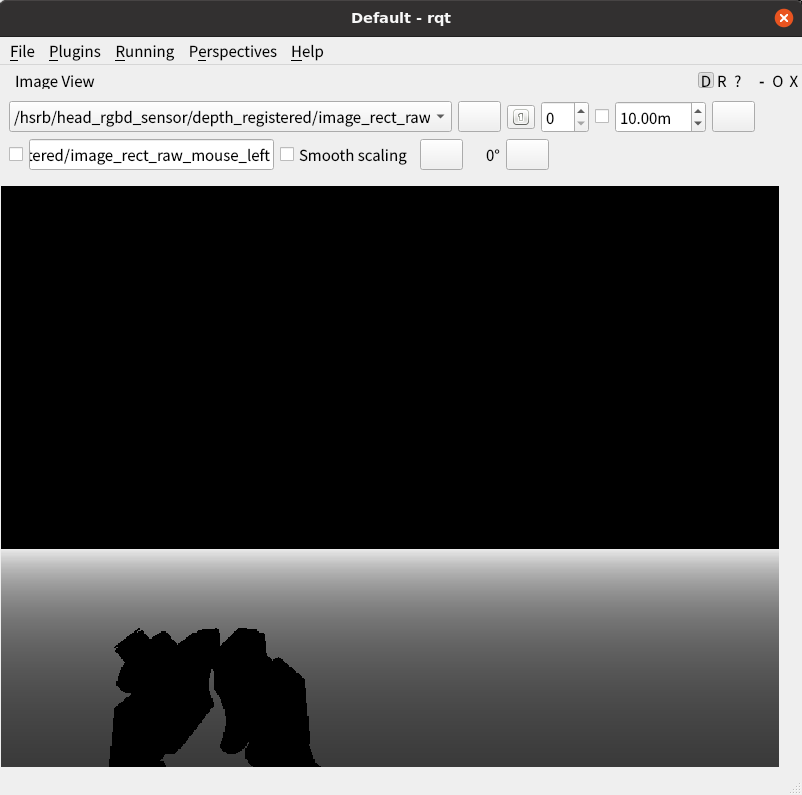 rqtが起動したら、「Plugins」→「Visualization」→「Image View」の順に選択し、トピック名から「/head_rgbd_sensor/depth_registered/image_rect_raw」を選択する